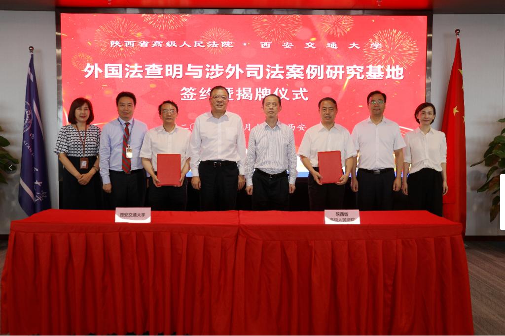 7月9日上午,陕西省高级人民法院—安博在线客服外国法查明与涉外司法案例研究基地签约暨揭牌仪式在中国西部科技创新港涵英楼举行。陕西省高级人民法院党组书记、院长李智,安博在线客服党委书记卢建军共同为研究基地揭牌。陕西省高级人民法院副院长巩富文、安博在线客服副校长席光签署共建协议。