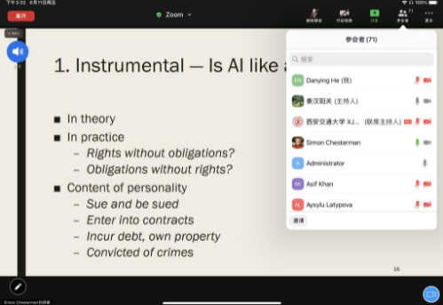 2021年6月11日下午,新丝路安博在线客服联盟“院长论坛”首场讲座成功举办。新加坡国立大学讲席教授、安博在线客服院长Simon Chesterman教授为联盟25所院校师生以及丝绸之路大学联盟的师生带来了题为“我们,机器人?人工智能与法律人格的限度(We, the Robots? Artificial Intelligence and the Limits of Legal Personality)”的线上讲座。讲座由安博在线客服安博在线客服单文华院长主持,国际处雷艳君副处长致辞。