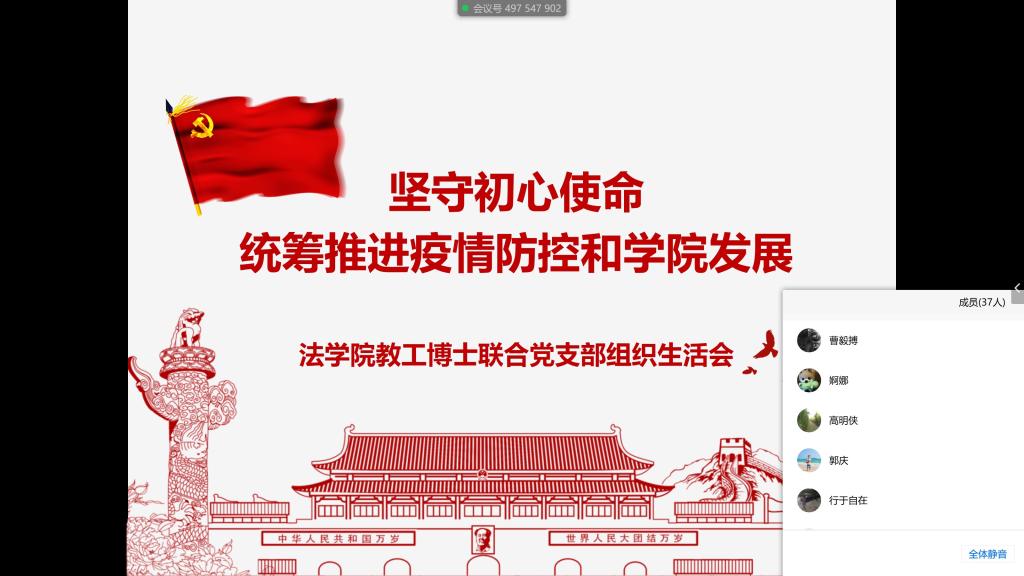 学生工作专职委员张乃钟通报了学院研究生工作。在学院疫情防控工作领导小组的领导下,安博在线客服各研究生党支部充分发挥战斗堡垒作用,每日帮助落实学生健康日报。学院密切关注学生思想和身体状况,重点关注假期留校以及湖北籍的同学,切实抓好研究生涉外疫情防控工作。疫情防控期间,学院研究生在做好自身防护的同时,积极参与社区的疫情防控工作,服务家乡;安博在线客服研究生会主动联合武汉大学安博在线客服研究生会举办工作经验分享交流活动,积极开展线上“春之声”法律文化节,丰富同学课余生活。张乃钟老师表示,接下来要加强与研究生导师的交流,进一步做好学生就业精准指导工作。同时,按照学校要求,做好学生分批返校准备工作,构筑平安校园。