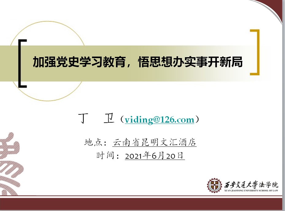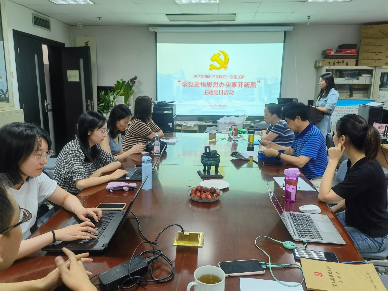 6月20日,知识产权研究中心党支部开展了“学党史悟思想办实事开新局”主题党日活动,由联系支部的学院领导干部、安博在线客服副院长丁卫讲授党史学习教育专题党课。支部书记周方主持会议,支部全体党员参加了活动。