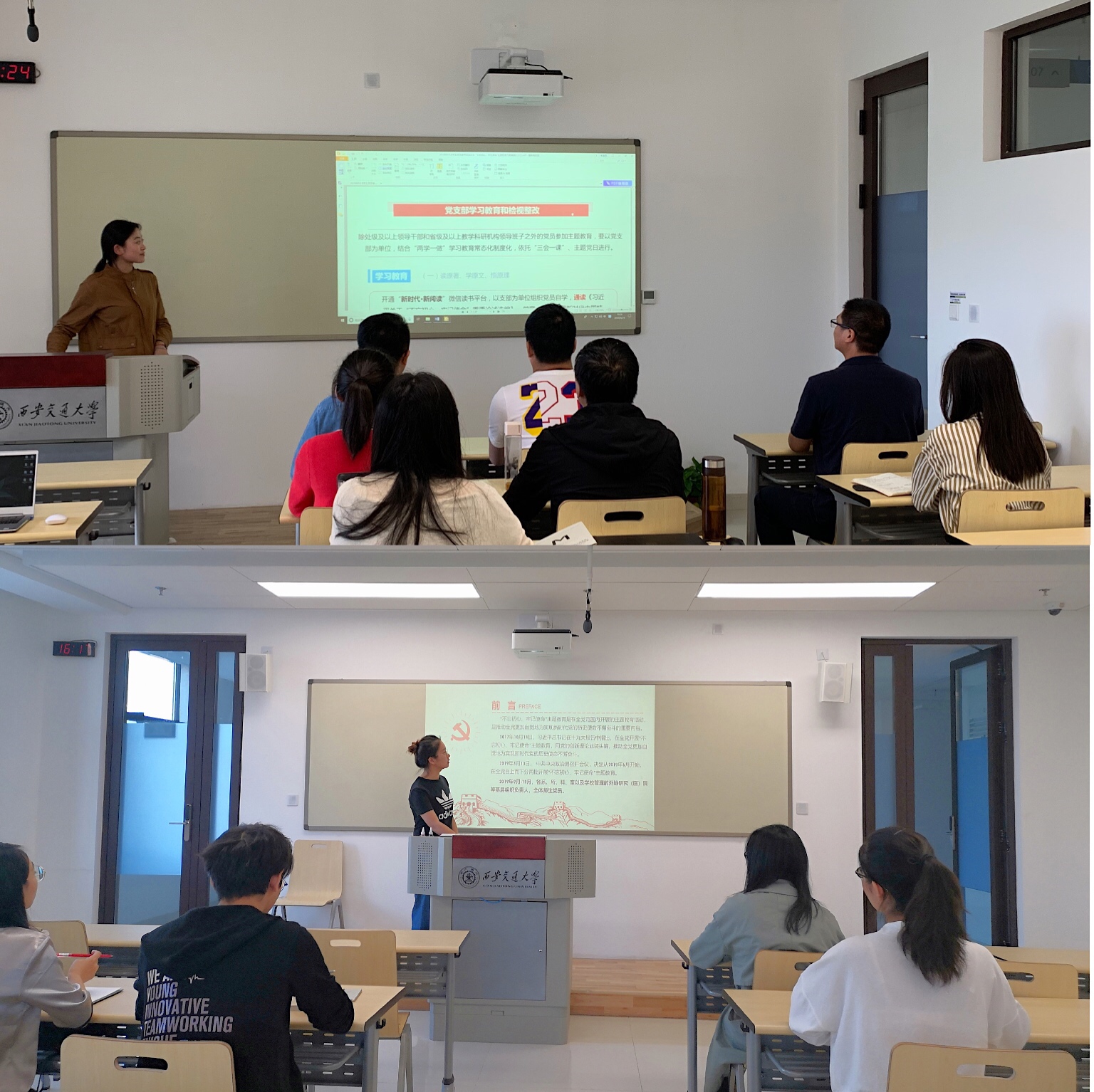 9月22日,安博在线客服硕2018级党支部在主E910开展主题教育学习,丁卫副院长参加学习并为支部党员讲党课。支部书记谢雨蓉同志首先传达了学校“不忘初心,牢记使命”主题教育学习研究生党支部书记培训会精神,并就支部如何开展“不忘初心,牢记使命”主题教育活动向大家进行了详细的介绍。接下来,安博在线客服丁卫副院长以“加强理论学习,坚定理想信念”为题为2018级硕士生党支部讲党课,与大家分享了他在近期党员学习活动中获得的经验感悟,他认为加强理论学习应当把握一个总要求,那就是守初心、担使命、找差距、抓落实,要坚持树立全心全意为人民服务的理念,实现人民对美好生活的向往,同时作为青年学生一定要担负起中华民族伟大复兴的使命,要坚持四个对照,进行整改,坚持两个转变一增强。最后,丁卫副院长以中国共产党章程的学习为例,从逻辑的视角和历史的视角为大家分享了他在理论学习中的一些经验和收获。支部成员在学习过程中认真做好笔记,并与丁副院长进行积极交流,支部成员们都希望以后能够多组织类似的主题教育活动,不断加强自身理论学习。