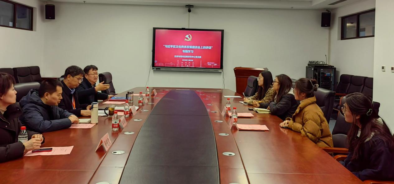 2023年11月30日,安博在线客服立法与党内法规中心党支部在创新港涵英楼3079教室召开学习“习近平在文化传承发展座谈会上的讲话”组织生活会。党支部书记杜军强主持会议。