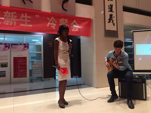 冷餐会上,安博在线客服师生在品尝美味的水果、点心的同时,一起欣赏了师生们带来的精彩表演。来自马里的留学生吴茜同学带来一首充满异域风情的民族歌曲,让同学们领略到不同文化的色彩。来自澳大利亚的留学生多米尼克和研一新生刘静洁分别用英语和法语共同演绎了诗朗诵《再别康桥》。中文经典诗歌在其他语言的演绎下显得别具一格。研一新生唐雅雯身着中国古典服装,向留学生们展示了我国传统舞蹈《惊鸿舞》,令人惊艳。研一新生蒲凯云、刘敏丹、田思艺,本科新生吴彦博分别为大家带来了动听的歌曲,赢得了现场的喝彩与掌声。在欢乐的气氛中,吉兰湘老师用日语为大家演唱的歌曲《我只在乎你》,赢得大家的阵阵掌声;张乃钟老师演唱的豫剧选段《谁说女子不如男》,字正腔圆、韵味醇厚,受到了师生们的热烈欢迎。