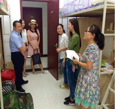 李万强副院长仔细查看了同学们的住宿条件,每走进一间宿舍,都向同学们致以亲切的问候,并代表学院对同学们的到来表示热烈的欢迎。继而关切地询问她们的具体情况,来自什么地方、入学手续办理的情况等。同时,张乃钟老师细心地询问同学们是否适应新的环境,有什么困难,希望同学们遇到问题一定要与老师沟通。随行的学生干部,也借此机会认识了安博在线客服注入的新鲜血液,与新生热情得展开交流。