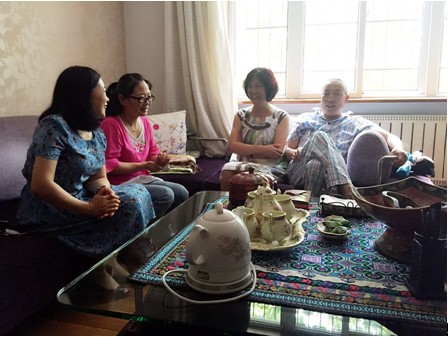 在李冰霜老师家里,我们见到了年过八旬的李老师。她激动地说:“感谢学院领导的关心和爱护,我很感动”。她对学院在配合学校120年校庆期间编著《耄耋回望青春》一书采访她的情景记忆犹新。她询问了学院目前在教学、科研等方面的发展情况,并予以充分的肯定和赞扬。