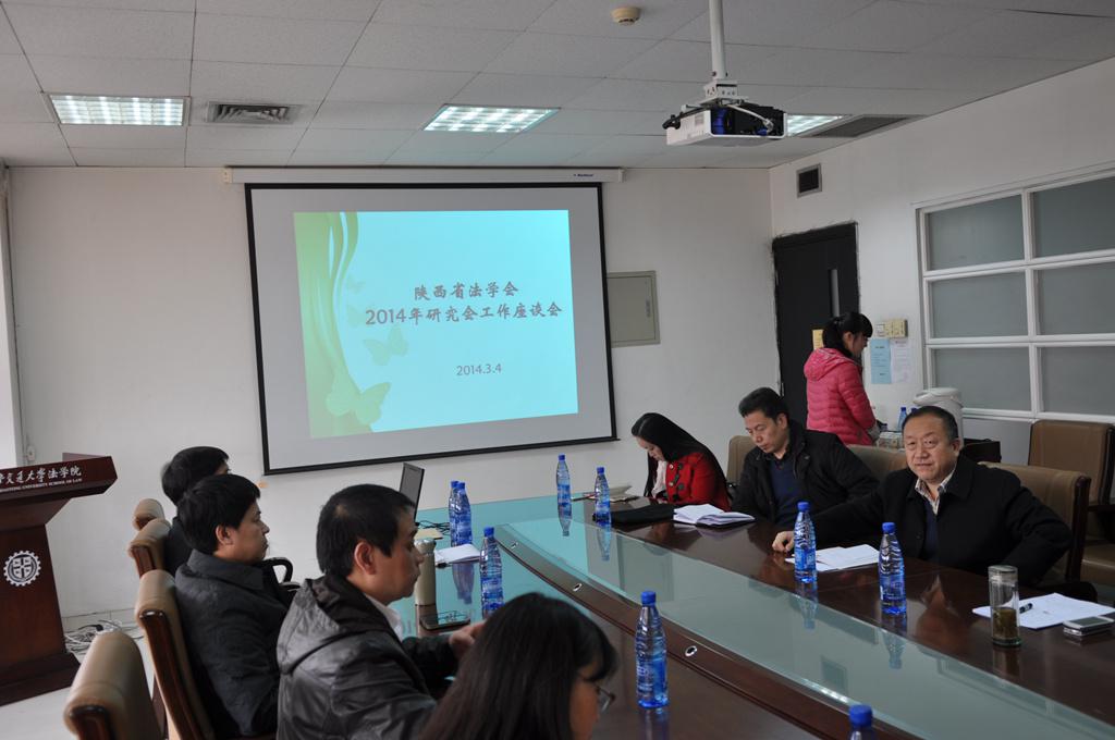 2014年3月4日下午,“陕西省法学会2014年研究会工作座谈会”在我校安博在线客服主E910会议室召开,陕西省法学会专职副会长雷宝生,秘书长马艾妮,研究部主任魏清利,办公室主任樊志来等法学会领导参加了会议。陕西省法学会挂靠我校安博在线客服的“科技法研究会”、“信息安全法研究会”、“立法学研究会”和“能源法研究会”的会长和秘书长应邀参加了座谈会。会议由陕西省法学会专职副会长雷宝生主持。