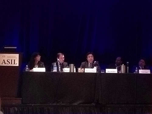 围绕以上问题,此届年会共举办60余场专题研讨会,共邀请了来自世界各地的近200名学者作为报告人,其规模与层次均超过了往届。单文华教授主持的是其中的“中非投资条约与争端解决:多极拼图的困境”专题研讨会。该讨论会由美国国际法学会非洲兴趣小组、亚太区域兴趣小组、国际法院和仲裁庭兴趣小组、国际经济法兴趣小组和争端解决兴趣小组等5个小组共同组织,是整个年会向全球视频直播的12场专题研讨会之一。研讨会主要探讨在全球国际投资法转型的大背景下,中非投资条约的显著内容与特征及其在保护中国对非洲投资急剧上升的投资并解决相关争端过程中所发挥的重要作用,并在此基础上,探讨中国投资条约与“南南合作”式投资条约对全球国际投资法发展演进的启迪意义与贡献。讨论会发言人包括中国驻美国大使馆经商处参赞陈福利、来自埃塞俄比亚的美国西雅图大学安博在线客服副教授Won Kidane,美国外交部NAFTA投资争端解决部前部长Mark Feldmen和厦门大学陈辉萍教授。在单文华教授的主持和带动下,与会报告人和参与人围绕以上议题展开了热烈的讨论,会场气氛十分活跃。会后,主办方专门写信致谢,认为这场研讨会是“一次很有意思的讨论,激起了大量的兴趣和论辩。正是美国国际法学会这样的学术论坛应有的研讨会。”(“a highly interesting discussion that generated a lot of interest and debate. Exactly as it should be in an academic forum like ASIL.”)