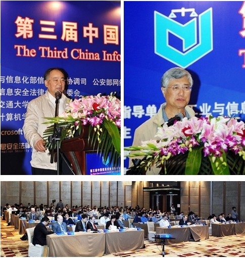 沈昌祥院士在会上讲话。他指出,信息是社会发展的重要战略资源,信息安全法制体系在国家信息安全保障体系中居于最高层级、具有基础性作用,在当前形势下,要加快信息安全立法、建立信息安全法制体系。工信部信息安全协调司胡啸处长、公安部网络安全保卫局李菁菁处长分别代表国家有关部门就网络与信息安全形势和立法执法问题作了重要讲话。