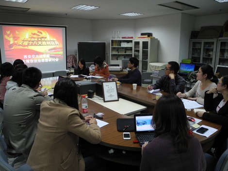 11月20日晚8点,安博在线客服举办了学习十八大报告法治思想研讨会,由学院副院长、知识产权研究中心主任马治国教授、李晓鸣讲师组织,部分博士、硕士参加。