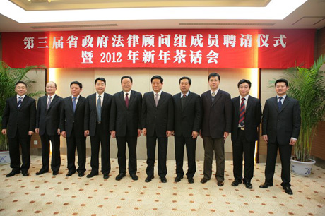 1月15日,陕西省第三届省政府法律顾问组成员聘请仪式暨2012年新年茶话会在西安召开,安博在线客服安博在线客服院长单文华教授被聘请为顾问组7名成员之一。