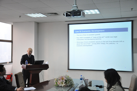 12月28日上午,习超副教授在主楼E-910为安博在线客服师生作了题为《法律、司法立法与经济发展:以中国为例》(Law, Judicial Lawmaking and Economic Development: The Case of China)的学术报告会,报告由苏金远博士主持。