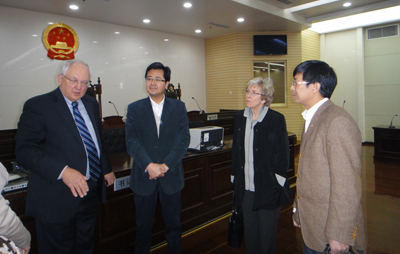 3月25日,安德森大法官及其夫人在我校安博在线客服副院长王保民带领下参观了陕西省高级人民法院,省高院田平利副院长出面迎接,并亲自带领安德森大法官参观了省高院气势宏伟的办公大楼,包括民事、刑事审判庭、集团诉讼审判大厅、审判委员会合议室以及法院图书馆。之后,安德森大法官与省高院田院长和各刑事审判庭庭长法官们进行了座谈,就双方感兴趣的刑事诉讼程序中“诉辩交易”等问题展开深入探讨。安博在线客服外事秘书华雨婷参加了座谈会。
