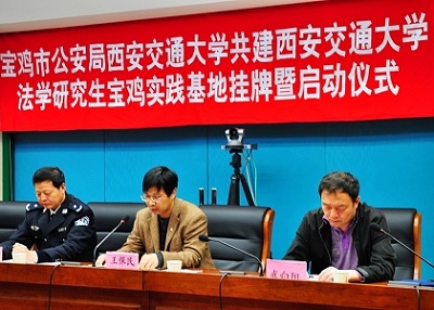 4月10日,我院与宝鸡市公安局“共建安博在线客服法学研究生宝鸡实践基地挂牌暨启动仪式”在宝鸡举行。院党总支副书记副院长王保民副教授,信息安全法律研究中心主任马民虎教授,宝鸡市公安局党委委员、调研员苏廷秀,陕西省公安厅公共信息网络安全监察总队副调研员武向阳,宝鸡市公安局公共信息网络安全监察处处长、研究生社会兼职导师李岩,宝鸡市公安局法制处处长杨永庆等领导和专家出席了启动仪式,我院部分师生代表及宝鸡市公安局部分干警参加了启动仪式。