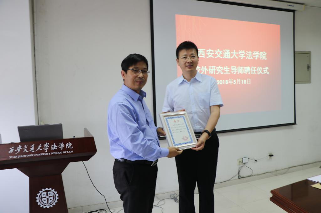 聘任仪式由李万强副院长主持。李万强副院长就安博在线客服安博在线客服的学科建设情况向几位校外导师作了的介绍。王保民书记代表学院为北京市康达(西安)律师事务所高级合伙人吕延峰、王小军、廉高波、王啸和白玉等五位律师颁发了聘书。王保民书记在致辞中向北京市康达(西安)律师事务所对我院研究生培养工作的支持表达了诚挚的谢意,对今后双方能够建立起长效的合作机制表达了殷切的期望。王小军主任代表律师事务所对安博在线客服协同培养育人项目的设立对于法律专业人才培养发挥的作用给予了充分的肯定,并表示北京市康达(西安)律师事务所一定会全力配合学院的教学安排,力争为社会培养更多优秀的专业事务型法治人才。