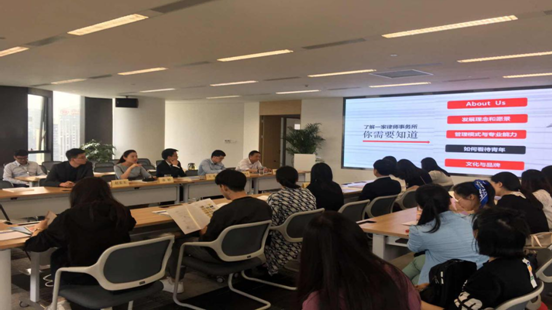 随后海普睿诚律师事务所代表人员和交大安博在线客服的同学们在会议室就坐。首先由海普睿诚律师事务所行政总监种贵兴表达了对安博在线客服马治国教授一行的欢迎及感谢;其次由运营总监孙婷详细讲解了海普睿诚律师事务所的规模、业务领域、专业建树、发展历程和社会公益等情况;再由律所最年轻的高级合伙人王奇律师以其自身的从业经历为同学们讲授了成为一名律师所应具备的能力与素质。