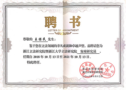 10月13日,首届之江立法论坛暨立法研究院学术委员会成员、客座研究员、兼职研究员聘任仪式在浙江杭州举办。论坛以“新时代地方立法”为主题,以推进立法领域高层次理论研究,提升立法研究水平,推动立法工作,以更好的适应新时代新要求。我校安博在线客服教授、立法与党内法规研究中心主任王保民受聘为“浙江立法研究院暨浙江大学立法研究院”客座研究员,并应邀作为与谈人在论坛上做了点评发言。
