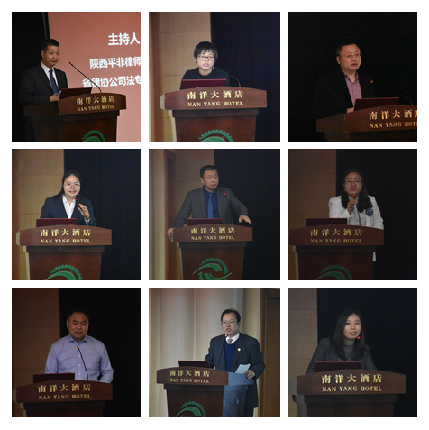 随后,大会进入了“群英会”环节。本环节由陕西标新律师事务所公司专业委员会副秘书长张晗,陕西永嘉信律师事务所合伙人、陕西省律协金融证券专委会委员张璠,陕西平非律师事务所副主任、陕西省律协公司法专业委员会副主任张权,陕西云德律师事务所公司法律顾问事务部首席律师、陕西省律协公司法专业委员会副秘书长杨彩虹依次主持,由张璠、岳玲利、田少荣、王玉苹、勾晓强、任婧、齐精智、刘醒、任永平、崔树森等十名律师对大西安建设中企业创新法律问题进行了深入的探讨,其所涉及的议题丰富,各位发言人见解独到,听众反馈积极,会议气氛热烈,也为今后的学术研究和司法实务开辟了新的视野。最后延安大学政安博在线客服副院长刘向林,陕西省企业经济法治研究会副会长、安博在线客服法学副教授张冰,陕西德伦律所主任梁志新,陕西德伦律师事务所律师、西安市律协公司法专业委员会委员韩小春对十名律师的报告进行了精彩纷呈的点评。