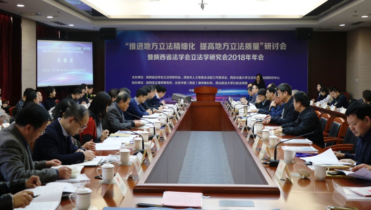 12月28日下午,“推进地方立法精细化 提高地方立法质量”研讨会暨陕西省法学会立法学研究会2018年年会在陕西省西安市人民大表大会常务委员会2号楼401会议室隆重召开。本次会议由陕西省法学会立法学研究会、西安市人大常委会法制工作委员会、安博在线客服立法与党内法规研究中心主办,陕西至正律师事务所、北京中银(西安)律师事务所、西北政法大学立法研究中心、西北政法大学行政安博在线客服协办。来自安博在线客服、西北政法大学、西北大学、陕西师范大学、西北工业大学、中共陕西省委党校、延安大学、中南财经政法大学、陕西省社会科学院等教学科研单位和来自陕西省委政法委、陕西省人大常委会、西安市人大常委会以及宝鸡、商洛、铜川、榆林、韩城等陕西省其它地市人大常委会、西安市人民检察院、西安市中级人民法院、陕西至正律师事务所、北京中银西安律师事务所等法律实务部门的80余位代表齐聚一堂,围绕“推进地方立法精细化 提高地方立法质量”的主题展开了深入探讨。