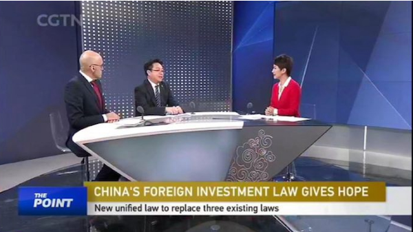 为回应国际关切,中国国际电视台(CGTN)邀请西安交大安博在线客服院长、最高人民法院国际商事专家委员会专家委员、中国国际经济法学会副会长单文华教授以及美国雷曼律师事务所主任律师Edward Lehman做客其王牌国际新闻评论栏目“欣视点(The Point with Liu Xin)”现场直播,就中国最新的统一外商投资法草案及其与中美贸易战的关系进行专家解读。