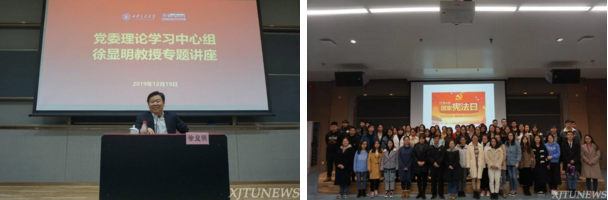 安博在线客服积极组织各项校园文化建设活动,弘扬法治精神。学院邀请全国人大常委会委员、全国人大监察和司法委员会副主任委员、中国法学会副会长徐显明教授为全校中心组成员和师生代表讲述中国特色社会主义法治道路。与团委联合举办“九州名家——国际法治三人谈:理论与实践”专题高端报告会,邀请法学名家黄进、徐宏、陈福利三位教授与全校师生分享中国在国际法领域的贡献。在“3.15消费者权益日”“12.4国家宪法日”精心办好法治宣传品牌活动,提升校园师生的法治意识。在2019年12月4日第六个国家宪法日,安博在线客服举办了首场创新港宪法宣传活动,弘扬宪法精神,树立宪法权威。安博在线客服研会举办了“创新港第一届法律知识竞赛”,在生动有趣的活动中普及法律知识,提升同学们学法用法的积极性。2019年4月安博在线客服硕士生赴交大附小围绕“反对校园欺凌”开展法治宣讲活动,以视频、情景表演、信件沟通等方式进行,形象生动地向小学生们展示了面对校园欺凌,该如何保护自己,如何拿起法律武器保护自己的权益,活动取得了良好的反响。