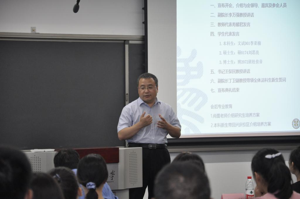 随后,安博在线客服党总支书记王保民教授发表总结讲话。他首先对各位新同学加入西交大安博在线客服表示热烈欢迎和衷心祝贺。其次他简要介绍了安博在线客服的发展情况和特色,即“成立虽短,但发展动能强大、发展迅速;招生数量不多,但人才培养特色鲜明、质量和社会认可度高;教师规模不大,但学历层次高、国际化程度高、成果卓著;虽是理工见长的大学办法学,但是学校平台高、办学条件和资源优越。最后王保民教授结合自身学生管理的经验,结合以往生动生活实例,对全体新生同学提出了几点期望和要求。一是要明确定位,尽快适应新的角色。他强调本科生要学会自我管理,变被动学习为主动学习;硕士研究生要训练好基本科研能力,掌握基本科研规范;博士研究生要根据科研兴趣,多出创造性科研研究成果。二是全面发展,突出重点。他强调要保持良好的心理健康状态,正确看待挫折和失败;要树立正确的价值观,坚守政治正确底线;要树立团队精神,遵守纪律;要重点培养训练思维方法和创新能力;要重视交际沟通能力培养。三是要牢记“院训”,争做卓越交大法律人。他强调要融入西交大的文化,传承“西迁精神”,谨守“校训”和“院训”,做一个有情怀的卓越的交大法律人。