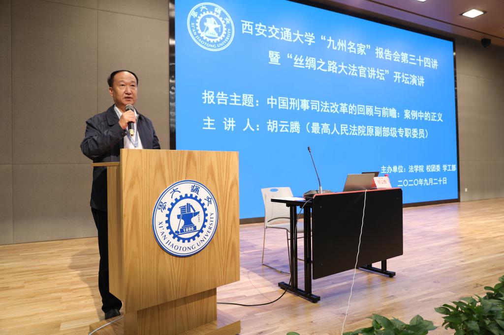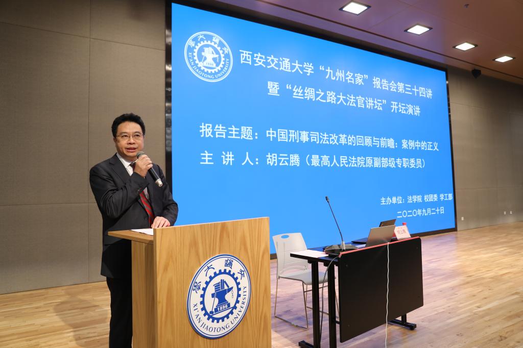 2020年9月20日,最高人民法院原副部级专职委员胡云腾大法官在中国西部科技创新港开坛论道,以《中国刑事司法改革的回顾与前瞻:案例中的正义》为题,畅谈中国司法改革40余年变化与成就。王树国校长在涵英楼11楼会见了胡云腾大法官。校党委副书记赵昌昌出席了报告会并致辞,校团委书记苏翔,陕西省律师协会会长韩永安,贸仲丝路中心秘书长助理蒋红梅,安博在线客服副院长李万强,安博在线客服副院长丁卫老师一并出席报告会。报告会由安博在线客服院长兼国际教育学院院长单文华主持。