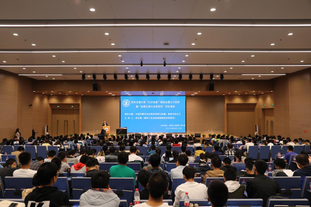 本次报告会是安博在线客服“九州名家”报告会第三十四讲,也开启了“丝绸之路大法官讲坛”的首场报告,亦是安博在线客服“百场报告”和中国西部科技创新港“科创月”的系列活动之一。本次报告由安博在线客服主办,校团委、学工部协办。报告会还吸引了陕西省律师协会、中国国际经济贸易仲裁委员会丝绸之路仲裁中心、西北政法大学等校外单位的法律界人士广泛关注和积极参与,与会嘉宾及全校多学科师生共计500余人到会聆听并参与互动。