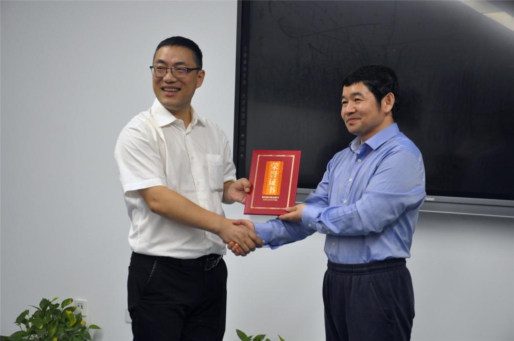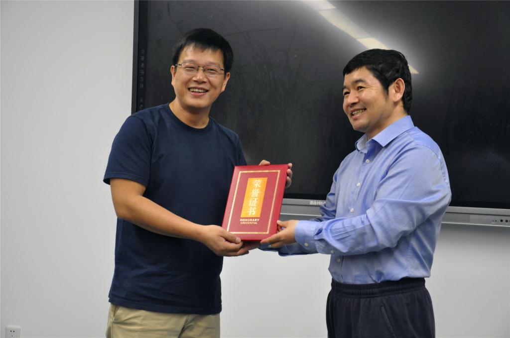 为促进长期合作,本次座谈会聘请阿里巴巴集团法务部连斌总监、方海峰总监为安博在线客服人工智能与信息安全法律研究中心特聘研究员,刘东亮教授代表中心颁发了聘书。