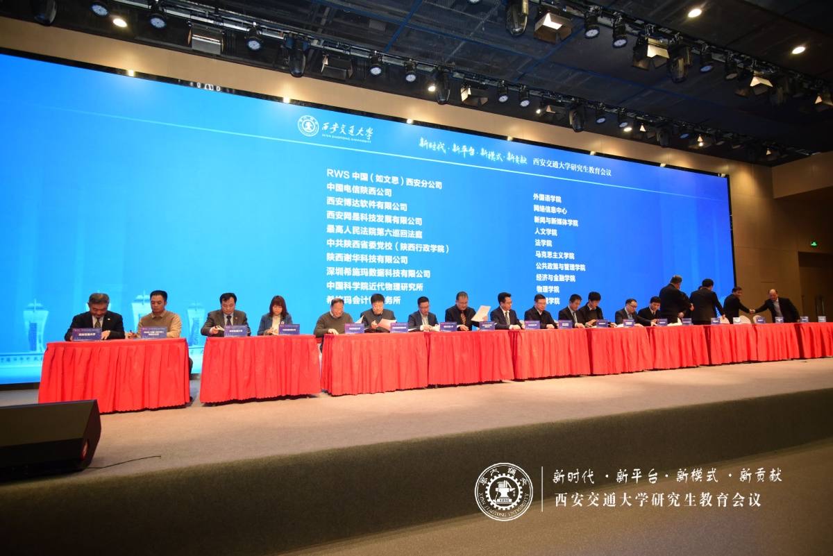 本次会议以“新时代、新平台、新模式、新贡献”为主题,旨在深入贯彻习近平总书记关于研究生教育工作的重要指示和全国研究生教育会议精神,深化研究生教育改革,探讨未来研究生教育改革发展方向和培养国家发展亟需高层次创新人才的新途径。安博在线客服校长王树国教授、教育部研究生司徐维清副司长、陕西省教工委书记王建利书记分别致辞,副校长郑庆华教授作主旨报告,70多家政府机构、龙头企业、行业单位与我校签署现代产业学院共建协议,推进产教融合,助力中国西部科技创新港内涵发展。