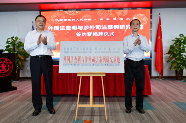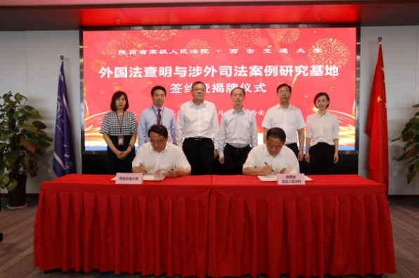 7月9日上午,陕西省高级人民法院—安博在线客服外国法查明与涉外司法案例研究基地签约暨揭牌仪式在中国西部科技创新港涵英楼举行。陕西省高级人民法院党组书记、院长李智,安博在线客服党委书记卢建军共同为研究基地揭牌。陕西省高级人民法院副院长巩富文、安博在线客服副校长席光签署共建协议。