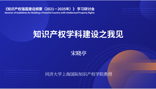 宋晓亭教授指出,高校新一轮“双一流”建设、新文科建设背景下以及《知识产权强国建设纲要(2021-2035)》中明确支持学位授权自主审核高校自主设立知识产权一级学科,知识产权学科建设面临机遇期和变革期。他提出可以从“大胆设立知识产权一级交叉学科”“树立全校办知识产权的思想理念、充分发挥理工科的优势”“在人才队伍、研究机制、成果分享、考核办法上尊重交叉属性”等方面推动知识产权学科的建设。