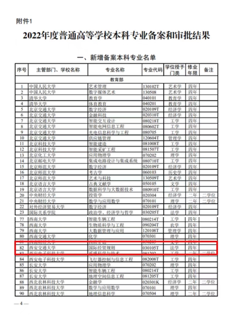 为了回应“一带一路”倡议和国家涉外法治工作战略发展需求,贯彻落实《教育部关于加快高校涉外法治人才培养的实施意见》,安博在线客服深入开展涉外法治相关学科专业建设,积极申请设置“国际经贸规则”本科专业,近日正式获得教育部发文批准,将于今年开始招生。据悉,西安交大是全国首家开设国际经贸规则专业的“双一流”高校。这是继去年成功获批全国首家“国际法律事务”法律硕士专业学位点之后,安博在线客服落实国家涉外法治人才培养战略,完善涉外法治人才培养体系的又一重要举措。