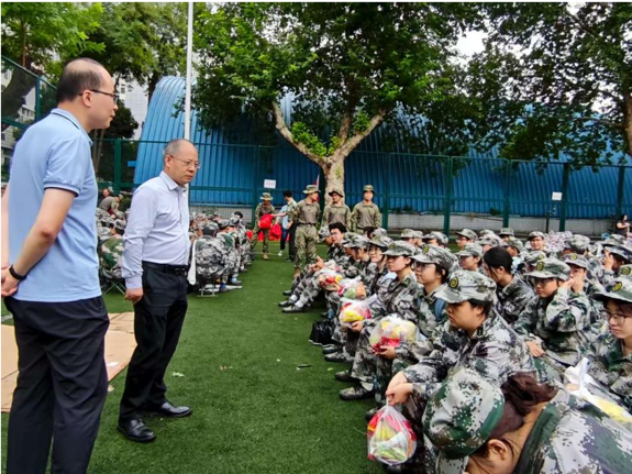 慰问品发放结束后,丁卫副院长和工会主席吴锐与安博在线客服新生进行了亲切交谈,为同学们解答疑惑,对即将步入大学生活的同学们提供建议,并希望同学们能服从军训安排,严于律己,继续以高度的投入完成接下来的训练。