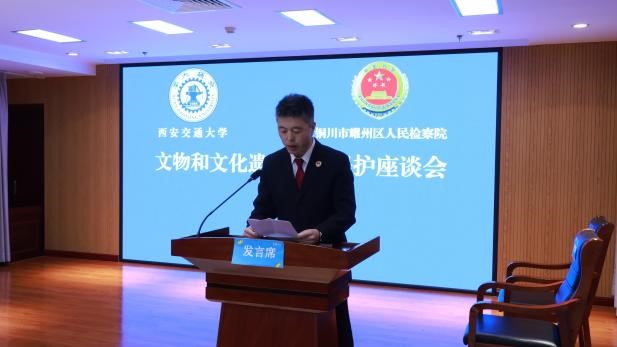 胡宇龙检察长致欢迎辞。丁卫副院长和刘丽娜副教授分别介绍了交大安博在线客服近年来“校检合作”培养卓越法治人才的情况和在文物文化遗产法律保护领域所取得的系列教学科研成果。葛建华副检察长介绍了耀州区人民检察院近几年为文物和文化遗产提供检察保护所取得的突出成绩,其中1件案例还被最高人民检察院发布为典型案例。双方均表示,希望今后能够深化检校合作,实现教学科研机构和实务机关之间的优势互补、资源共享、共建共赢。