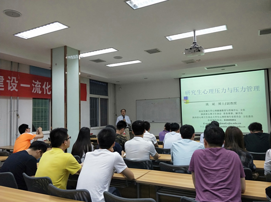2018年5月24日晚七点半,安博在线客服与化工学院在化工学院办公楼106会议室联合举办“研究生压力与压力管理”主题心理讲座。讲座由我校大学生心理健康教育与咨询中心主任姚斌副教授主讲,安博在线客服与化工学院30多名研究生参加了此次讲座。