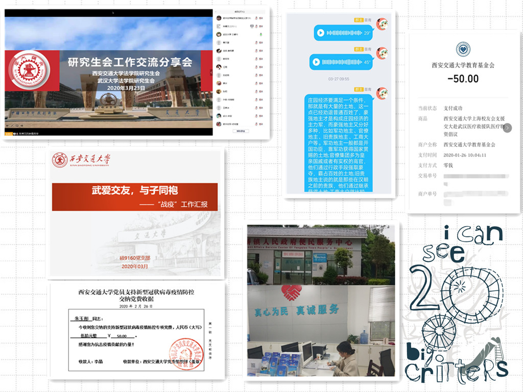 “六期直播中,我承担着观看者和运营者的双重身份”,支部党员赵璇兴奋地说,“作为阿里助教,在这段线上运营的过程中,我累并快乐着!收获满满!”2020年3月,阿里巴巴安博在线客服与西安交大安博在线客服等高校合作,邀请蚂蚁金服等互联网企业的法务专家团队推出“法律人的未来”直播课程,一直研究信息安全的赵璇对此非常感兴趣,主动请缨担任本次直播课程的助教,负责与阿里安博在线客服联络接洽,为我院学子带来六场精彩的报告,有效开拓了同学们的实务视野。