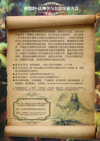 基于以上种种考量,并配合学校“思想交大”建设和学院法理学和公法学的学科建设,安博在线客服“立法与社会治理研究中心”发起创办“利维坦·法理学与公法学读书会”系列活动。本学期该活动选取的经典文本为让·博丹的《主权论》,并于10月18日晚7时在学院会议室举行了首场活动,安博在线客服丁卫副教授、吉兰湘老师、彭何利博士、苏青博士、王朝恩博士、卞苏博士、唐学亮博士等10余位师生参加。主权理论是现代民族-国家兴起的理论前提,而民族-国家又是现代社会最重要的一个政治与法律现象,并与中国近代以来持续至今的伟大而艰难的国家转型勾连起来,因此,不得不察。在该场读书会活动中,主讲教师唐学亮针对博丹《主权论》一书的“导论”部分,就“为什么读博丹?”、“怎么读博丹?”、“博丹的思想里程与理论建构”以及“博丹理论的缺陷”等四个方面做了一个提纲挈领而又不失理论深度的学术报告。之后,就报告的内容及书中所启示的一些重大理论与现实问题,与会人员各自发表了自己的看法,并展开了热烈的讨论。首场读书会活动取得了预期的效果,我们将在两周后的同一时间举行第二场活动。“路漫漫其修远兮,吾将上下而求索”!