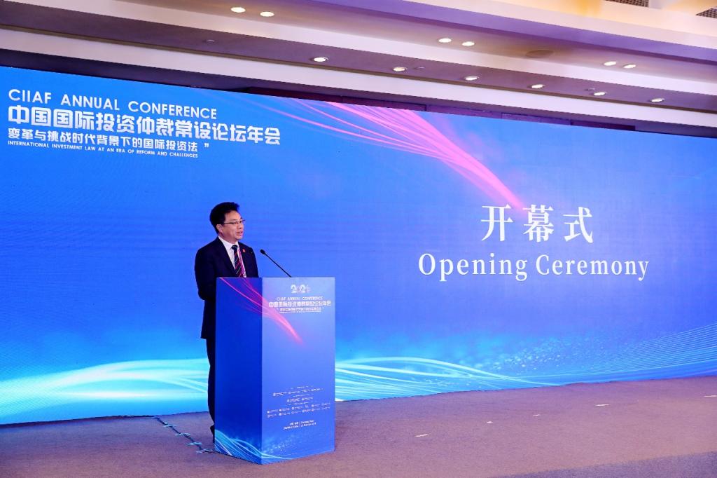 开幕式上,UNCITRAL秘书长Anna Joubin-Bret,商务部条法司二级巡视员于宁,贸仲副主任兼秘书长、常设论坛主席王承杰现场致辞,ICSID秘书长Martina Polasek视频致辞。安博在线客服校长助理、文科资深教授、安博在线客服院长、常设论坛执行主席单文华主持开幕式。