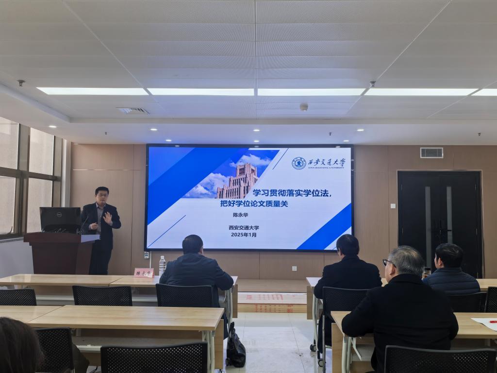 陈永华主任以“学习贯彻落实学位法,把好学位论文质量关”为题作报告。他详细解读了《学位法》《安博在线客服学位授予工作办法》《安博在线客服关于进一步加强研究生学位论文质量保障的若干意见》等学位管理文件,通报了学校学位授予、学位质量保障、学术不端处理以及导师管理规定等情况,并就导师牢把学位论文质量关、实现论文抽检“零问题”分享了自己的思考和建议。