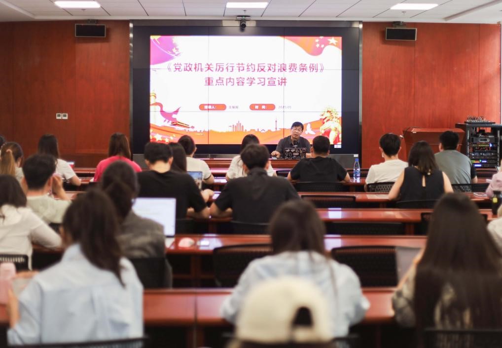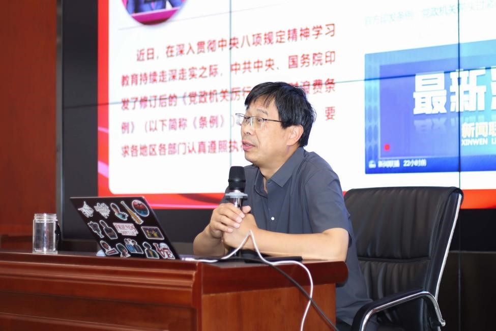 王保民书记围绕《条例》修订的时代背景与重大意义展开解读,指出《条例》修订是党中央着眼于新形势新任务,对党政机关厉行节约反对浪费工作提出的新要求,对于深入贯彻中央八项规定精神学习教育持续走深走实具有重要意义。