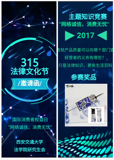 2017年3月15日,安博在线客服研究生会成功举办了第八届“春之声”法律文化节,本届法律文化节由上、中、下三个分场组成,分别为社区普法、法律讲座和知识竞赛,活动旨在进一步增强大学生和市民对网络消费的了解,提高消费者对网络消费的安全意识和维权意识。