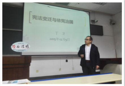安博在线客服研究生会、法律爱好者协会携手“学而讲坛”,推出“国家宪法日”专题讲座,邀请安博在线客服副院长丁卫副教授就《宪法变迁与依宪治国》进行专题讲座。丁老师在讲座中详细介绍了我国现行宪法历次修改的过程,他结合历次宪法修改的历史背景,生动地讲述了我国宪法变迁的历史发展,他最后对我国宪法实施中存在的瓶颈及问题进行了透彻的分析和讲解,为大家展示了依宪治国的现状及前进方向。