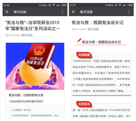 为了配合“国家宪法日”系列主题活动的顺利开展,安博在线客服安博在线客服研究生会在院党总支、团工委的指导下,以“宪法与我”为主题,不断创新宣传载体,探索宣传方法,通过官方微信平台“南洋法脉”等新媒体,结合传统的发放传单等方式,积极推介“国家宪法日”相关内容,宣传安博在线客服开展宪法学习宣传教育活动的实际情况,取得了良好的宣传效果。