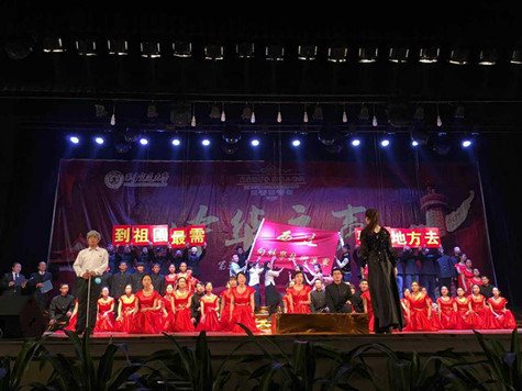 “向前进!向前进!西迁气势不可阻挡!向前进!向前进!朝着西迁的方向!”随着全体合唱队员的齐声演唱,整个合唱队伍变换成“XQ(西迁首字母)”和“60”的造型,一面写有“西迁!想科学技术进军!”旗帜迎风飘扬,将现场氛围带至顶点,瞬间点燃了全场观众的激情。大树西迁,饮水思源,在“到祖国最需要的地方去!”的誓言中展现了新一辈安博在线客服与化工学院青年学子的拳拳报国情。