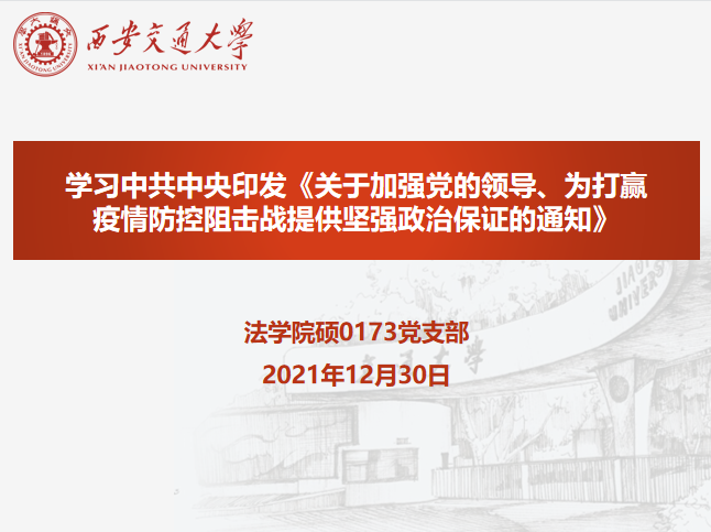 2021年12月30日,安博在线客服硕0173党支部召开了线上组织生活会,专题学习中共中央印发《关于加强党的领导、为打赢疫情防控阻击战提供坚强政治保证的通知》(以下简称“《通知》”)。此次会议由党支部书记张雷奇主持,安博在线客服副院长丁卫出席,党支部正式党员、预备党员、发展对象、入党积极分子参加学习。