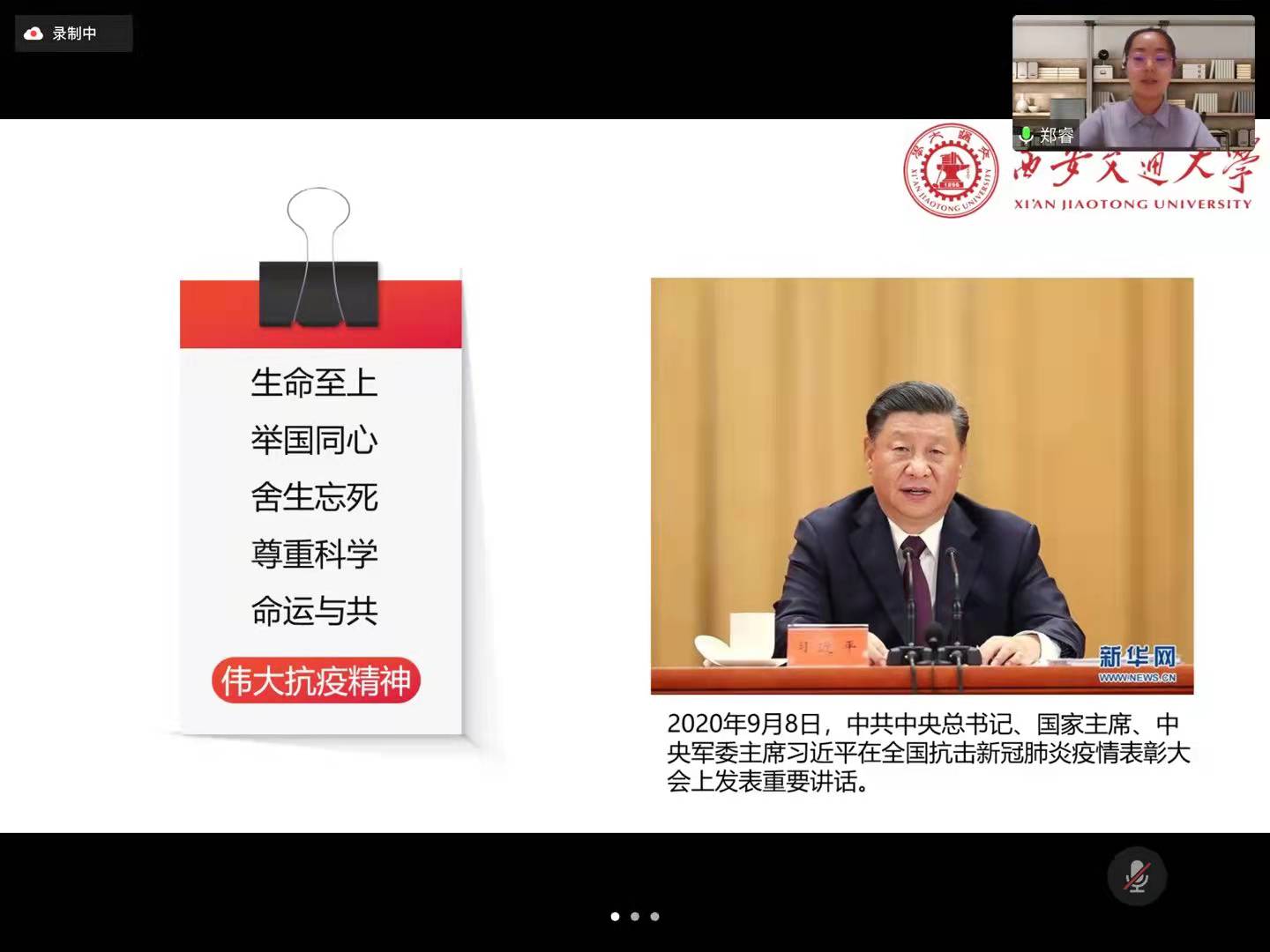 接着,王若楠、张文倩带领大家学习《通知》文件精神。张文倩首先向同学们播放了西安2021抗疫视频,向大家展示出疫情期间西安各行各业齐心协力、共同抗疫的情形,以及安博在线客服广大师生在疫情期间的携手努力。视频中熟悉的陕西方言、这座城市我们所走过的每一条街道,都让大家倍感亲切也分外暖心。