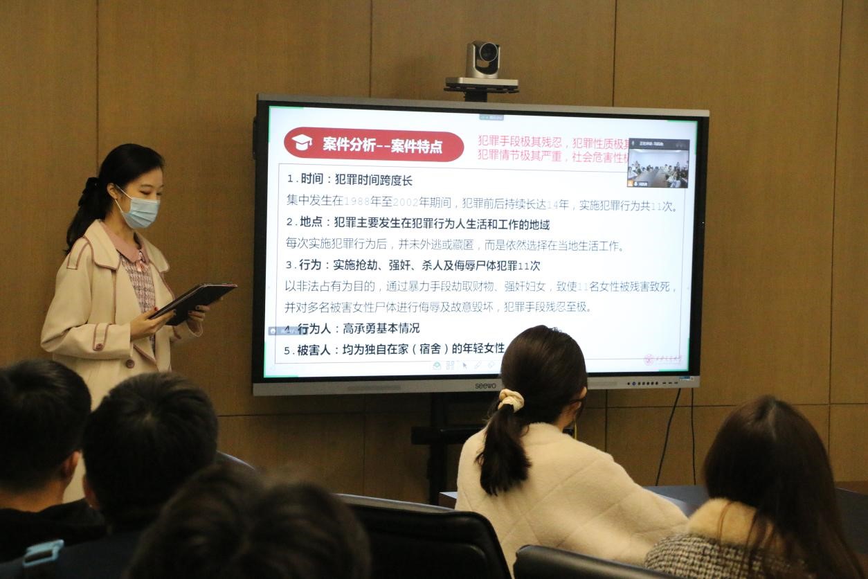 本期普法微课堂聚焦旷世大案“甘肃白银连环杀人案”。安博在线客服马卓同学首先介绍了案件基本案情。从1988年至2002年间,高承勇在我国甘肃省白银市及内蒙古包头市连续杀害女性11名,作案跨度14年,最小受害人年仅8岁,手段残忍,极具隐蔽性,造成了巨大的社会恐慌。随后,马卓同学就罪犯的家庭背景、生活环境和作案习惯等方面进行了讲解,深入浅出地使同学们在短时间内对该案件形成了系统性认识。