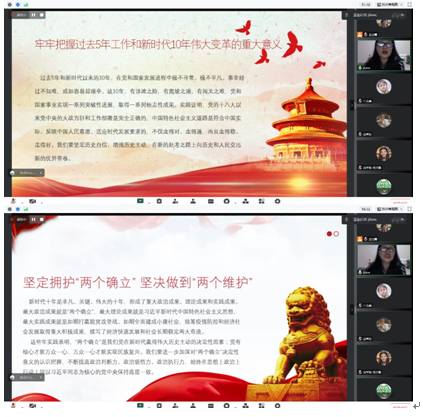安博在线客服硕1172党支部于2022年12月3日晚19:30在线上举行了以“全面深入学习党的二十大精神”为主题的宣讲活动,由安博在线客服党总支委员吉兰湘老师进支部为同学们宣讲党的二十大精神及报告主要内容,支部全体党员及入党积极分子参加会议。