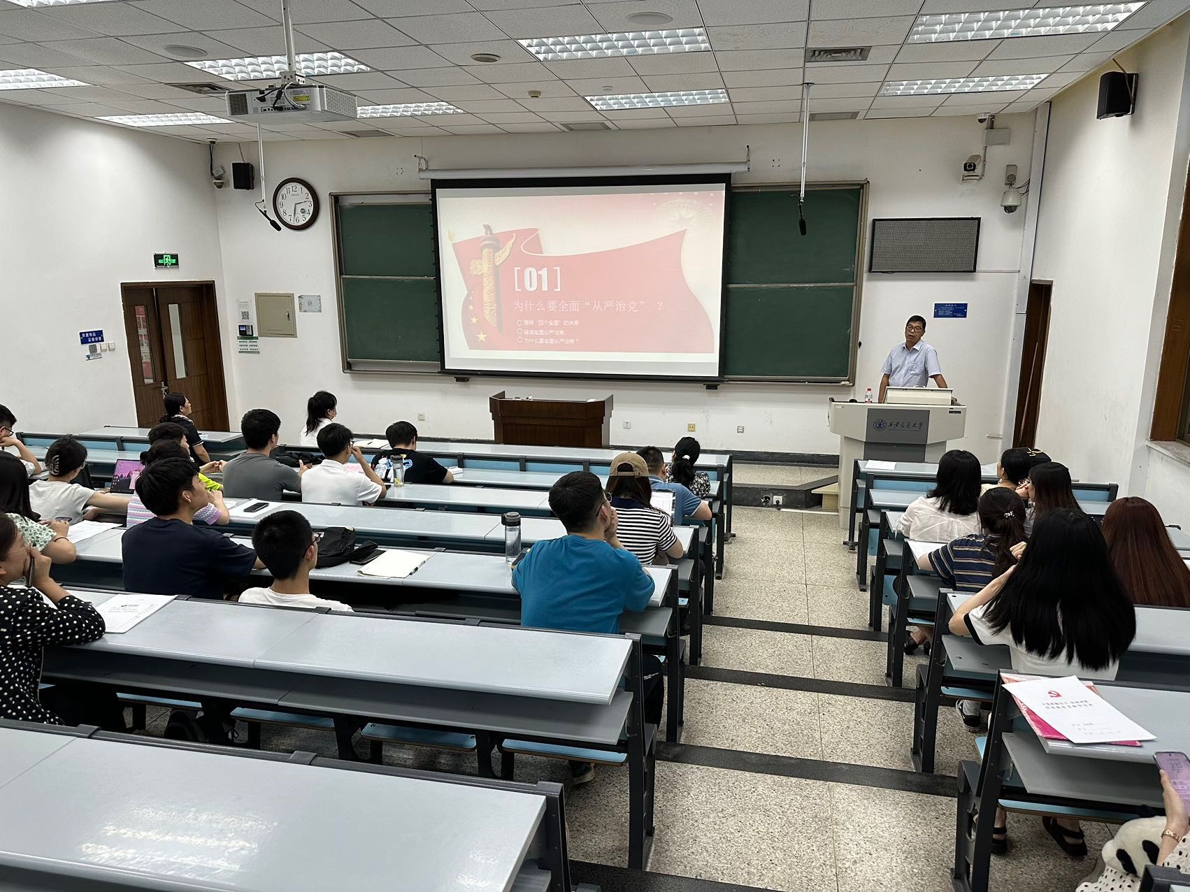 下午,安博在线客服党总支书记、安博在线客服立法与党内法规研究中心主任王保民教授为全体发展对象讲授了题为“全面从严治党,锻造坚强领导核心”的主题教育党课。报告中,王保民书记从建党治党的历史沿革、原因分析、历史经验,主要任务、精神原则、具体举措等多个方面深入讲解了全面从严治党制度体系,进一步为同学们未来成为一名忠诚可靠、严守党纪的合格党员打下了坚实理论基础。接着,党总支邀请到马克思主义学院马列读书社的成员郭越、陈瑀峰分别做了题为“赓续伟大建党精神,凝聚青年奋进力量”和“学习贯彻习近平新时代中国特色社会主义思想”的专题报告,鼓励同学们紧紧跟随党的脚步,以赤诚之心,不负时代,努力前行,竭尽全力,为新时代党和国家的事业发展贡献自己的力量。